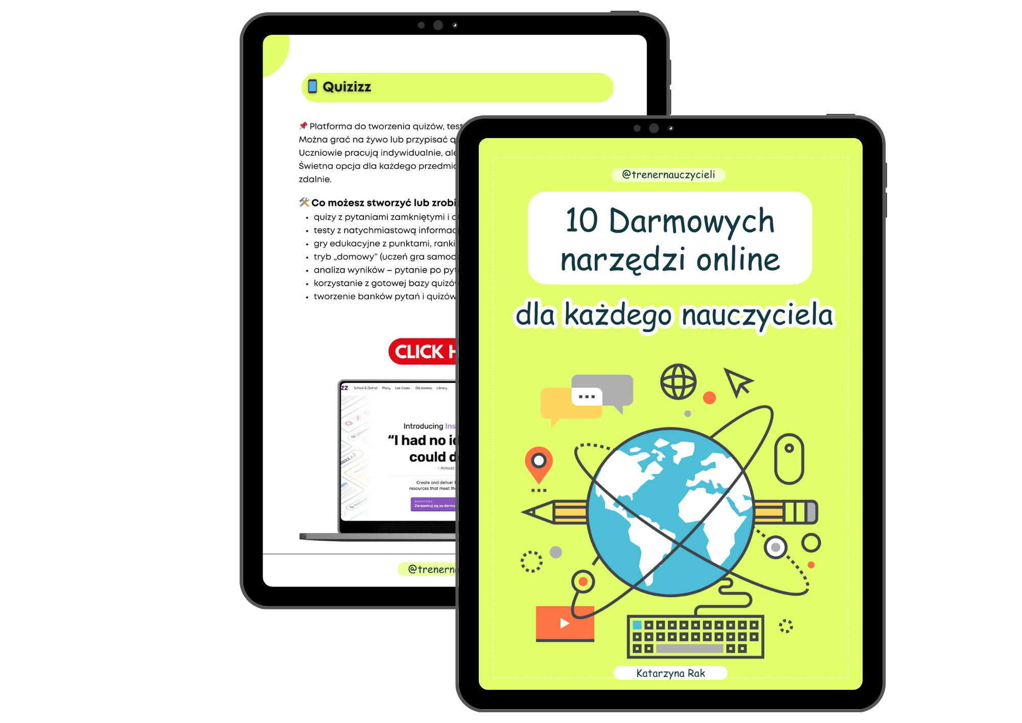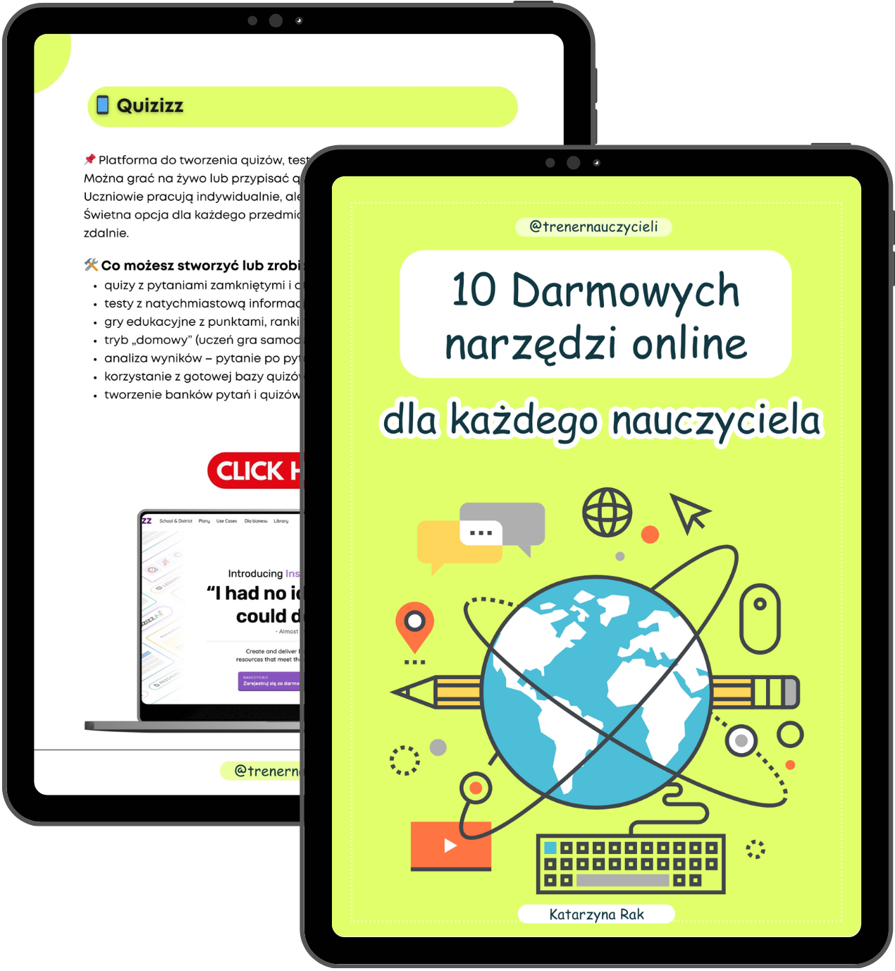 Nazywam się Katarzyna Rak i moja przygoda z nauczaniem online zaczęła się w 2017 roku, kiedy zdecydowałam się raz na zawsze odejść z pracy w szkole. Specjalizuję się w innowacyjnym nauczaniu online z wykorzystaniem technologii oraz tworzeniu wysokiej jakości materiałów dydaktycznych dla nauczycieli. Pomogłam setkom nauczycieli zaoszczędzić czas na przygotowywanie materiałów na lekcje, oferując moje e-booki oraz szkolenia metodyczne.